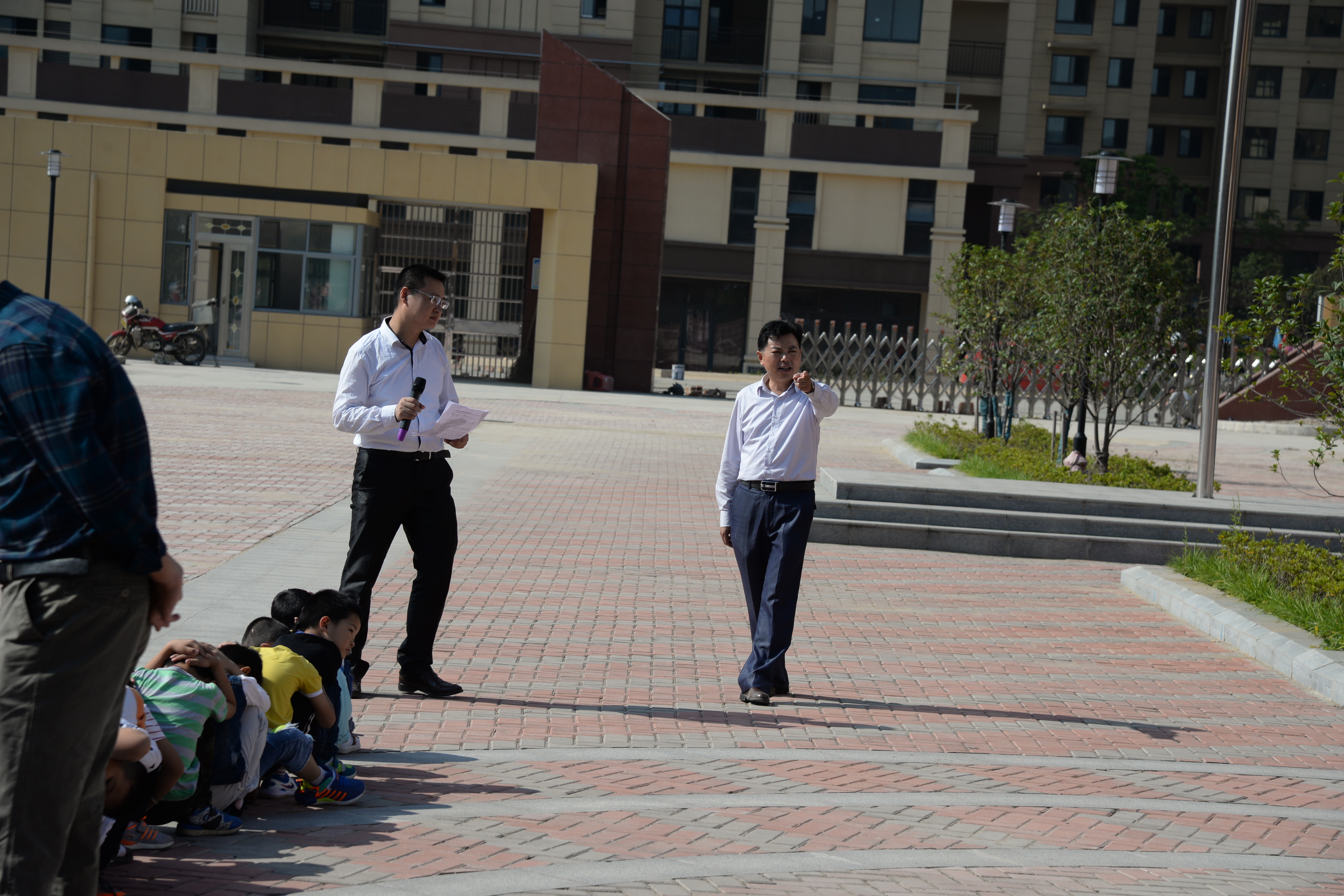 9月18日上午10点整,刺耳的警报声从上空传出,防空疏散演练开始了。正在上课的老师带领学生双手护头,沿预定路线迅速撤离教室。全校1000余名师生全部安全到达指定位置,整个过程用时6分20秒,很好地完成了本次演练活动。整个演练过程指挥得当、紧张有序。