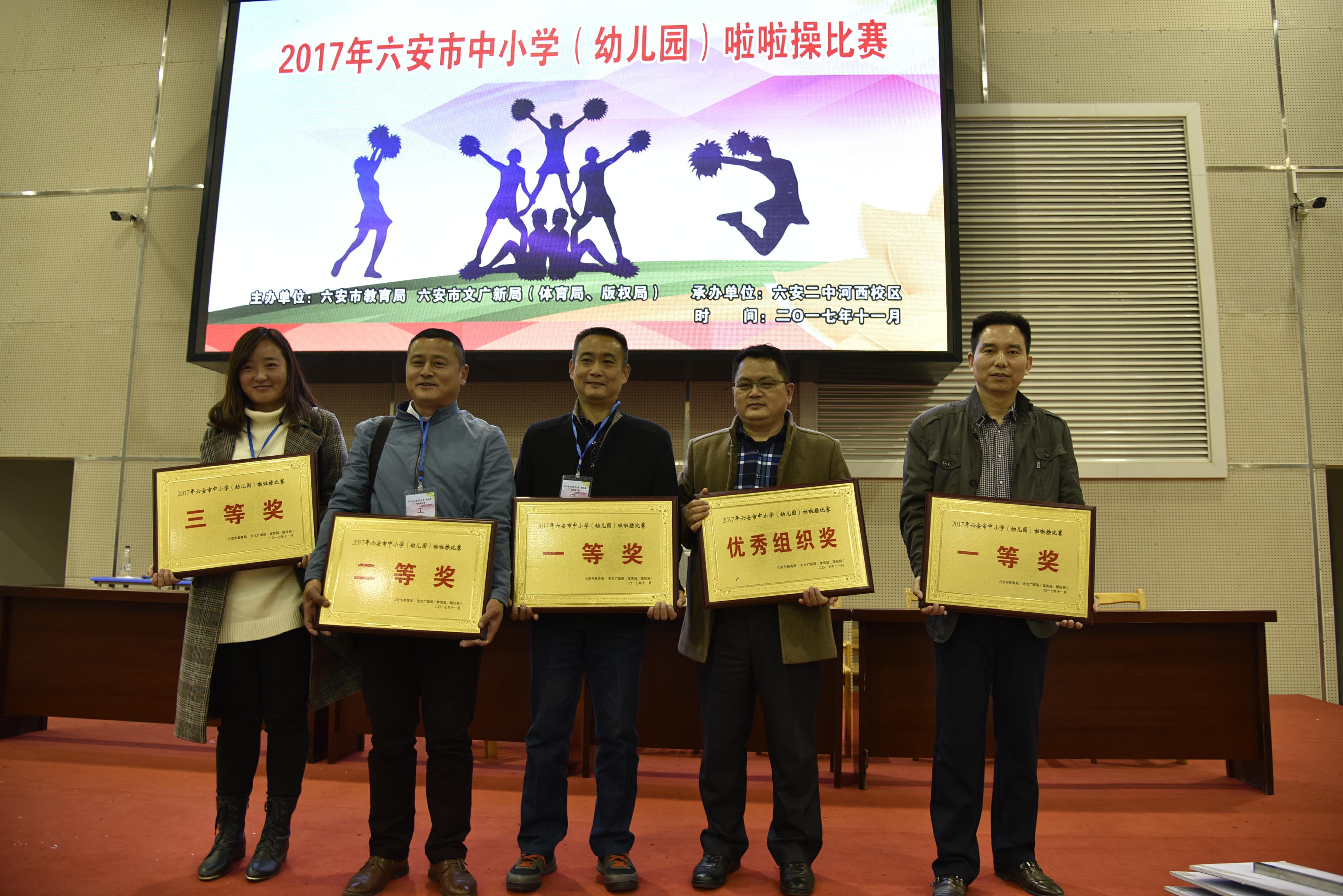 11月12日,由六安市教育局、六安市文广新局联合举办的“2017年六安市中小学(幼儿园)啦啦操比赛”活动如约而至,来自全市各县区的36支队伍共八百多名运动员在霜叶丹红的金秋时节相聚六安二中西校区。我校24名啦啦操队员在比赛中奋发进取,一举获得了规定动作(9.60)与自编动作(9.68)双项第一的好成绩,最终获得全市小学组冠军。