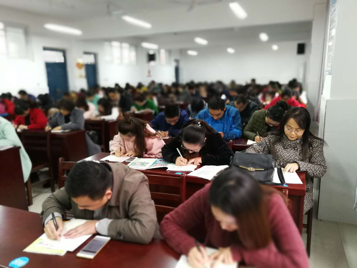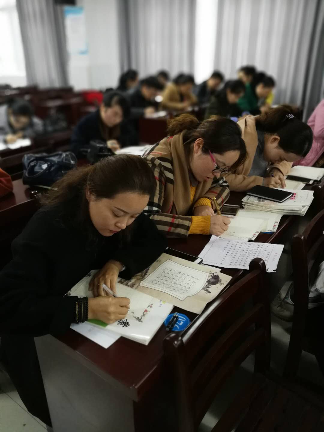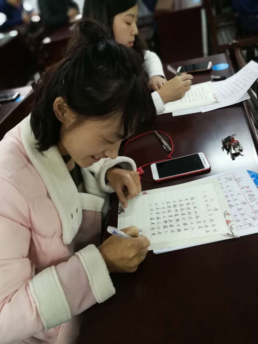 11月13日下午放学后,解放路第二小学会议室内座无虚席,全校一百多位老师个个紧握钢笔,正屏气凝神地书写。这里正在进行本校2017年教师钢笔字比赛。比赛内容是:(一)观沧海(曹操);(二)七律--人民解放军占领南京(毛泽东);(三)浪淘沙--喜迎十九大(毕林旭)。字体要求正楷或行楷。
