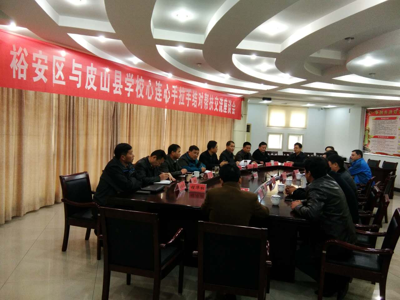 为贯彻落实党中央、国务院和安徽省委、省政府对口援疆工作的部署和要求,以及安徽省教育厅皖教秘基[2015]28号文件精神, 11月18日由新疆皮山县木吉镇中心学校党支部书记韩恒志率领的镇中心校一行四人不远万里抵达裕安区解放路第二小学,开始了为期半个月的跟岗学习。 下午在裕安区教育局会议室举行了隆重的欢迎仪式。裕安区教育局局长黄秉武、区教育局党委书记鲍传满、副局长李刚祥、解放路小学领导等出席了欢迎仪式。仪式上黄局长致欢迎词,并就裕安的区情和教育概况作了介绍。结队双方学校就各自学校的基本情况作了详细的介绍,并对本次活动的具体开展进行了交流,双方衷心希望通过本次结队活动的开展,促进彼此教学和管理共同进步。(胡和友 报道)