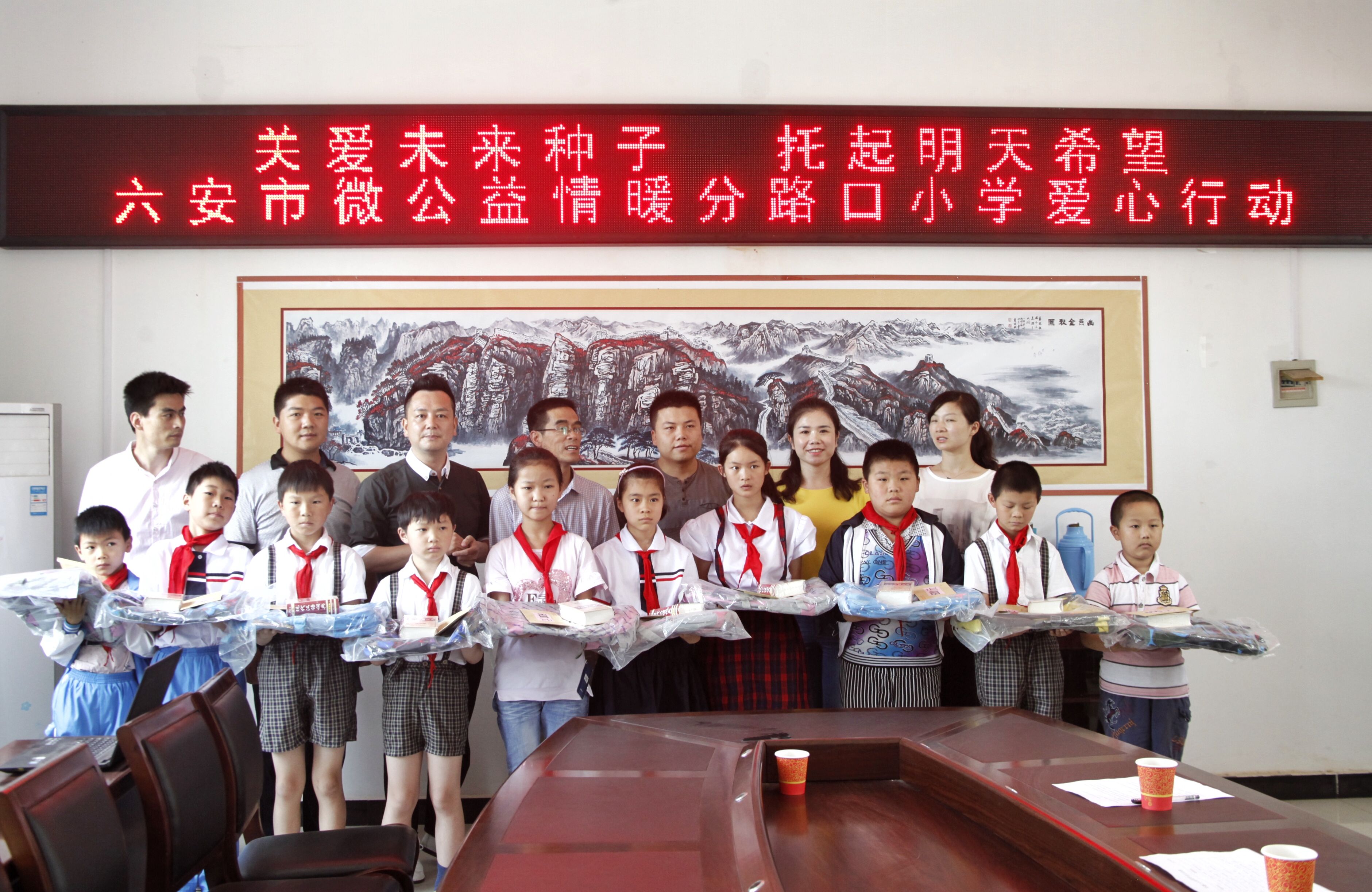 岁月记录感动,爱心与日俱增。解放路小学赴分路口小学支教的四位老师:王安慧,王成婉,赵善甫,朱冬梅为期一年的支教工作即将结束,为了切实帮助那些家境贫寒的孩子,6月15日,他们携手六安市微公益爱心协会在分路口小学举行捐资助学活动。
