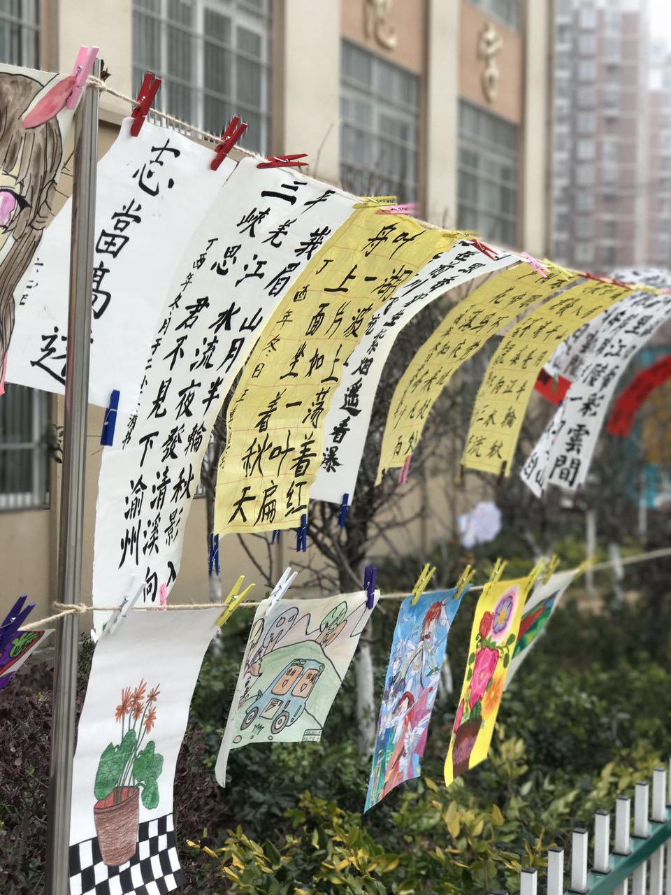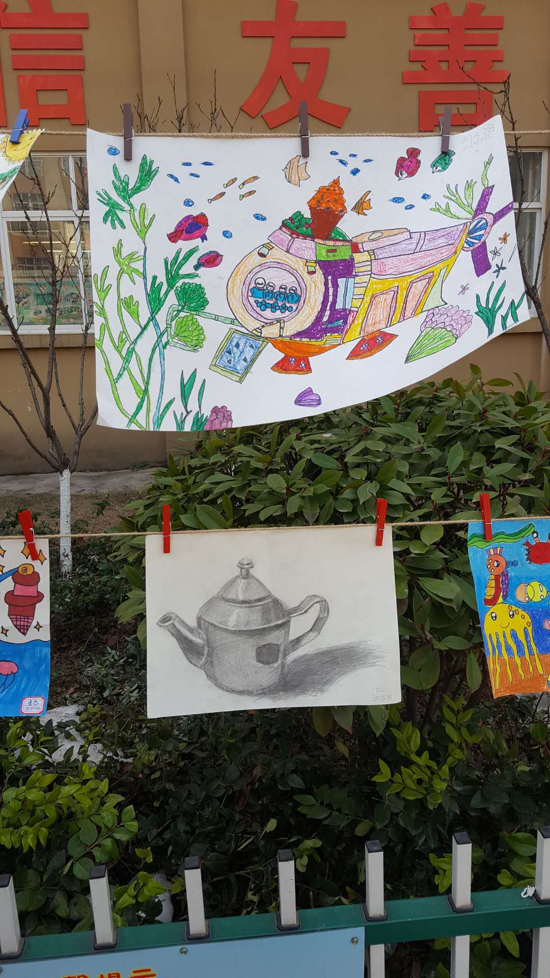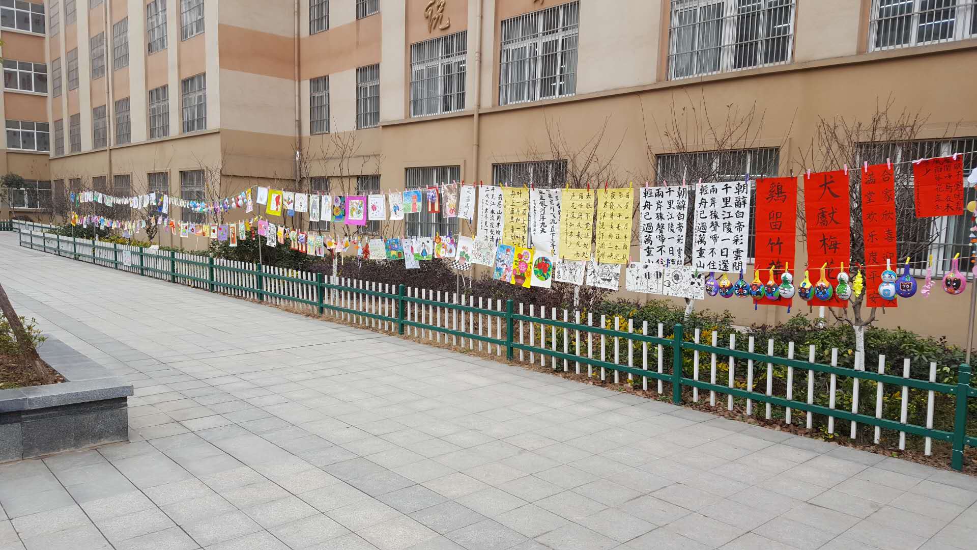 此次展览的作品均为学生在本学期社团课上创作,内容丰富多彩,表现手法灵活多样,囊括了春联、素描、水粉、彩绘、剪纸、捏泥等各大艺术形式,共收集整理学生作品500余件,充分展示了学生的艺术才华。