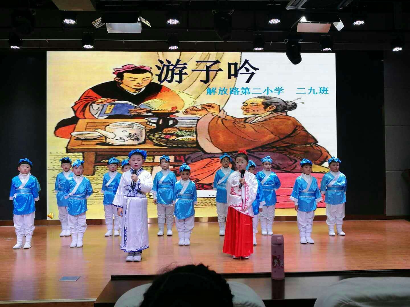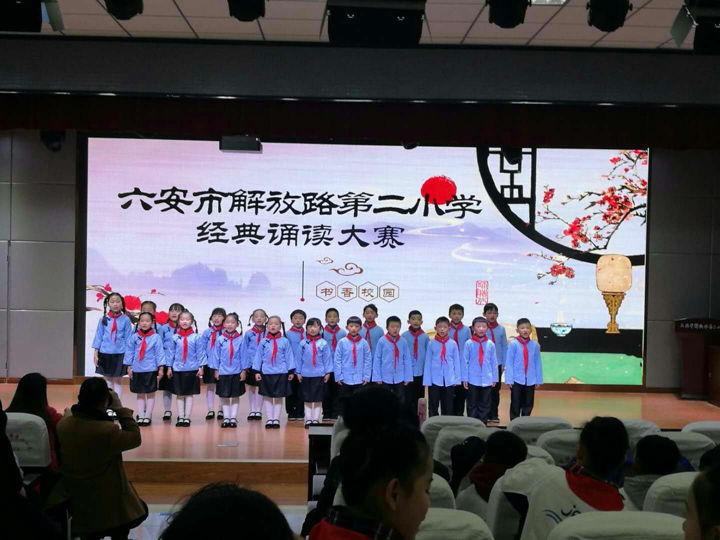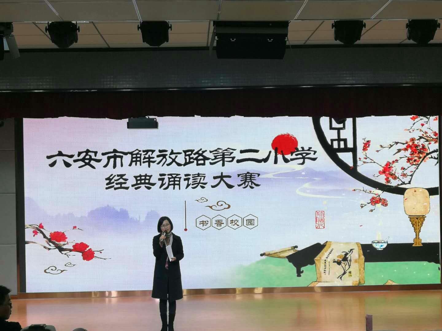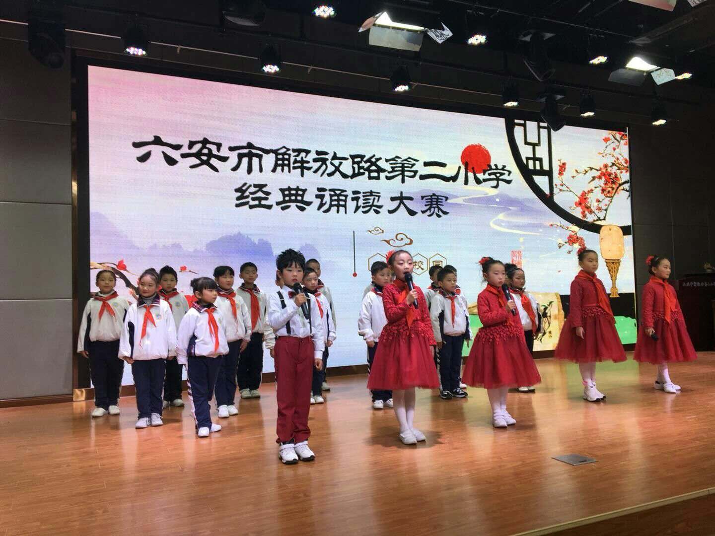 2018年1月2号、3号下午,伴随着新年的钟声解放路第二小学二、四、六年级经典诵读比赛拉开序幕。此次比赛分为自选作品和必选作品两部分,自选作品内容由各班级自行选择并辅以配乐和背景;必选作品由各班级现场留下一名选手从学校准备的十首诗歌中任意抽选3首进行背诵。